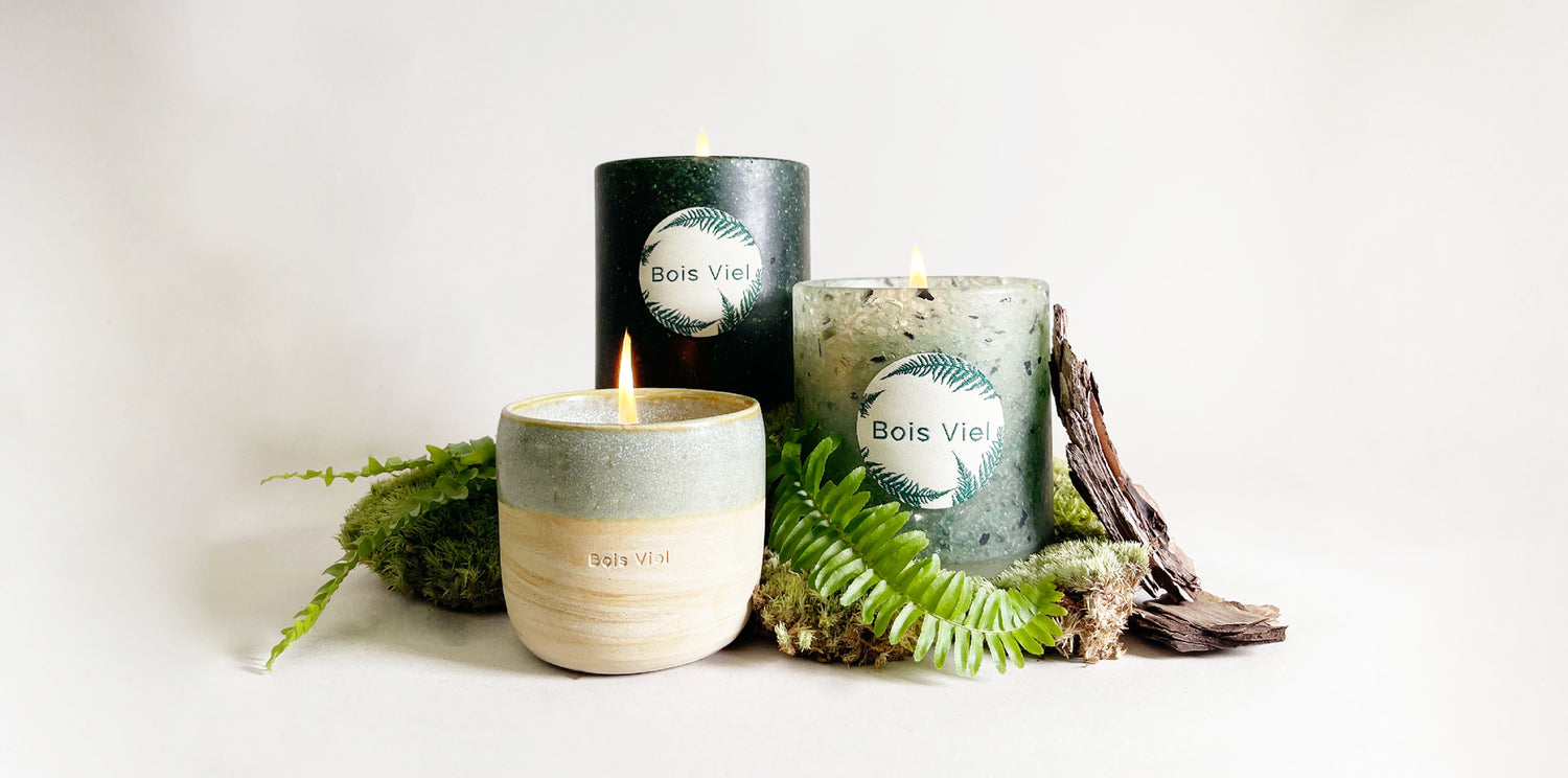 Plongez dans une expérience olfactive unique avec nos bougies organiques et respectueuses de l'environnement, pensées près de la forêt de Fougères à Bois Viel.